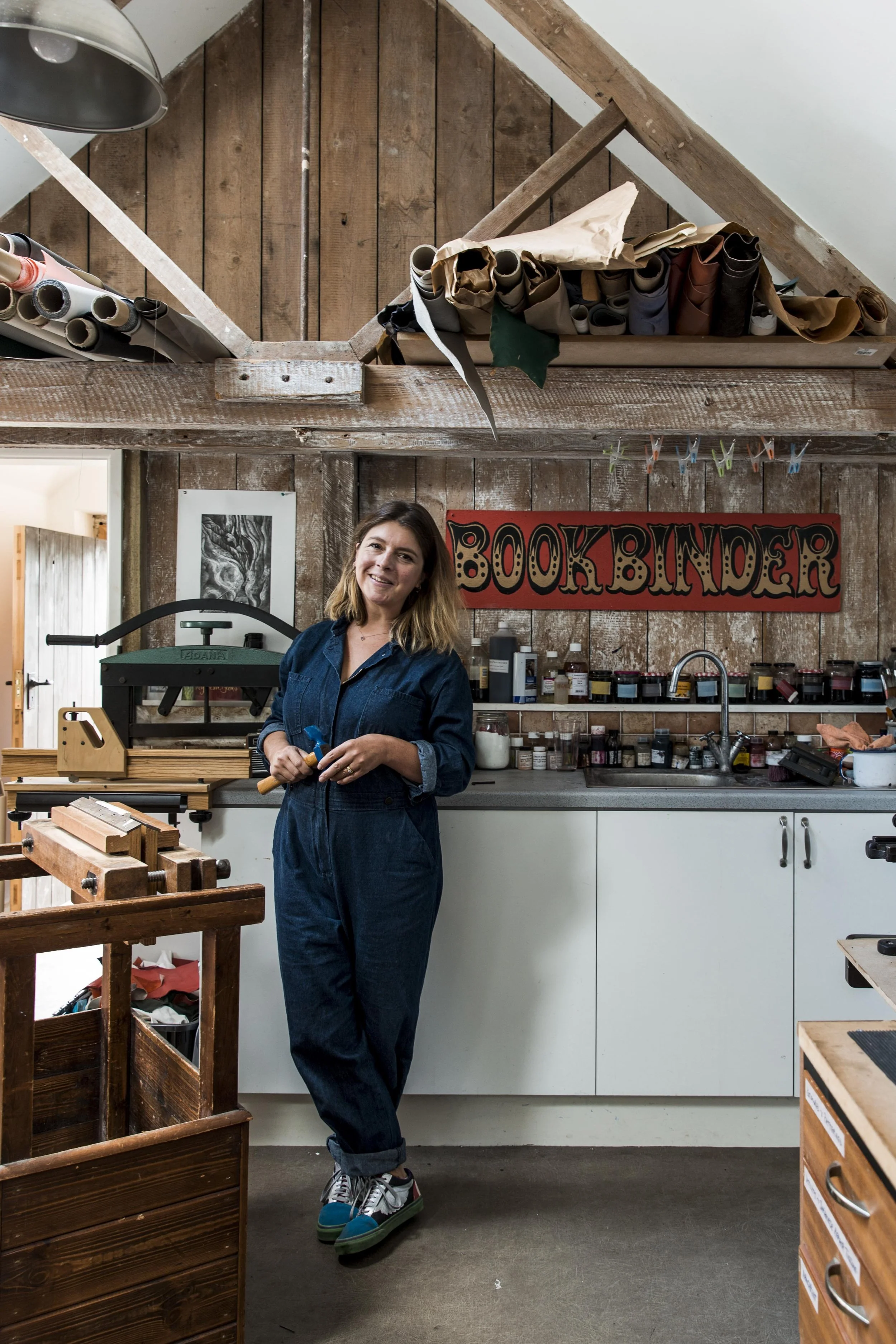 Kate is a Fellow of Designer Bookbinders, a Homo Faber Master Artisan and a QEST tutor and scholar, funding study into continental fine binding techniques. Her books are in collections at the British Library, Bodleian, Miami,Yale and Berkeley Universities as well as the Library of Human Imagination and many private collections all over the world. She represented bookbinding as part of the Harewood Craft Bienniale. She is a regular binder to The Booker Prize and featured in a film on BBC The One Show exploring this. She runs the bookbinding department at Bath Spa University and is a regular tutor at West Dean College. She also runs private courses from her workshop and regularly lectures.